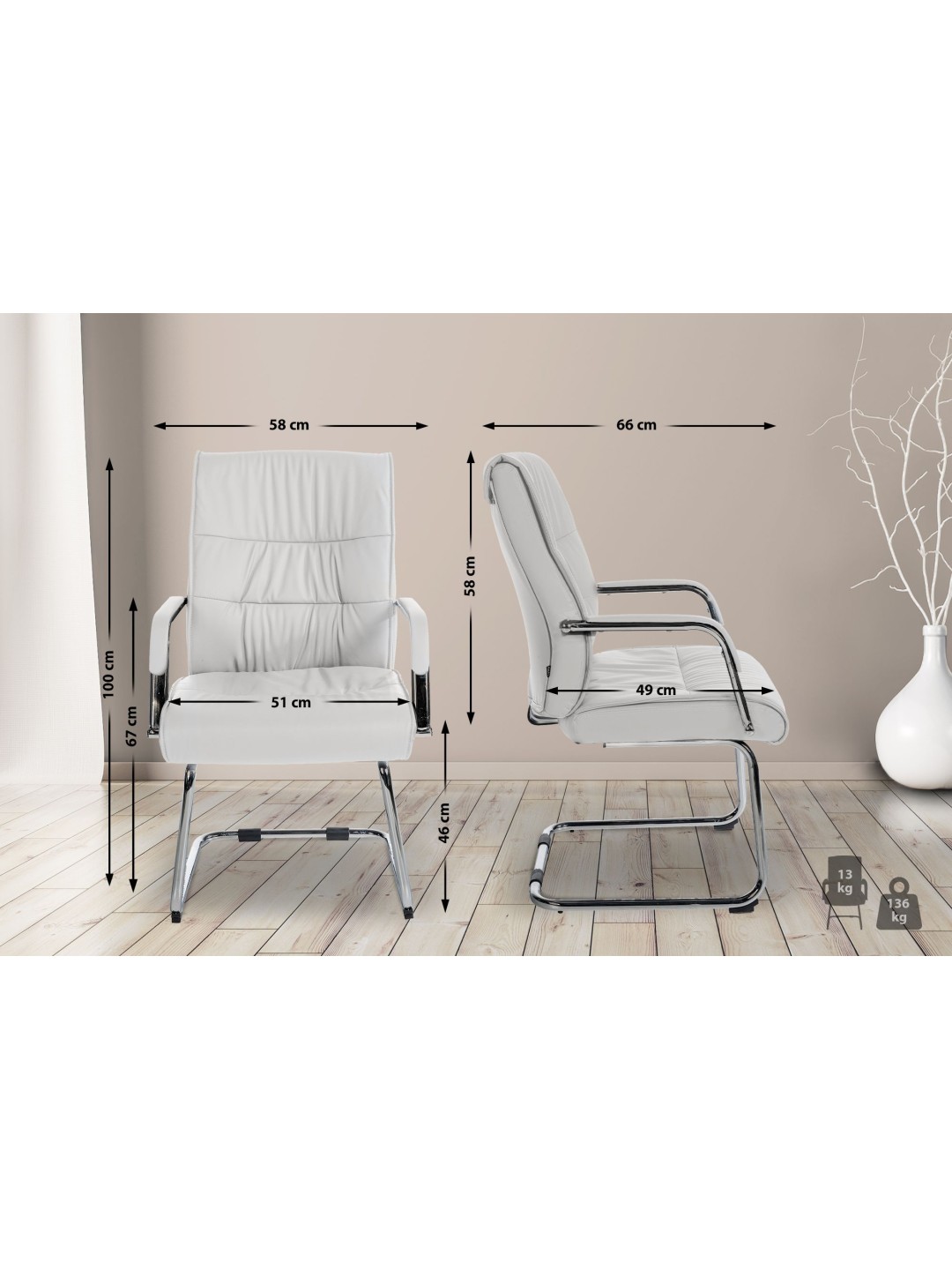 Disse besøgsstole giver ethvert rum et eksklusivt look. De komfortable stole imponerer ikke kun med deres fremragende siddeegenskaber, men også med deres moderne design. Svingende frit tilpasser de sig præcist til den siddendes benlængde og vægt. Takket være det ergonomisk formede sæde og komfortable armlæn er selv længere siddeperioder ikke trættende. Den behagelige polstring er beklædt med kunstlæder. Sievert-gæstestolene ser godt ud på det robuste metalstel til enhver lejlighed - alt du skal gøre er at vælge den rigtige farve fra vores bestillingstilbud.