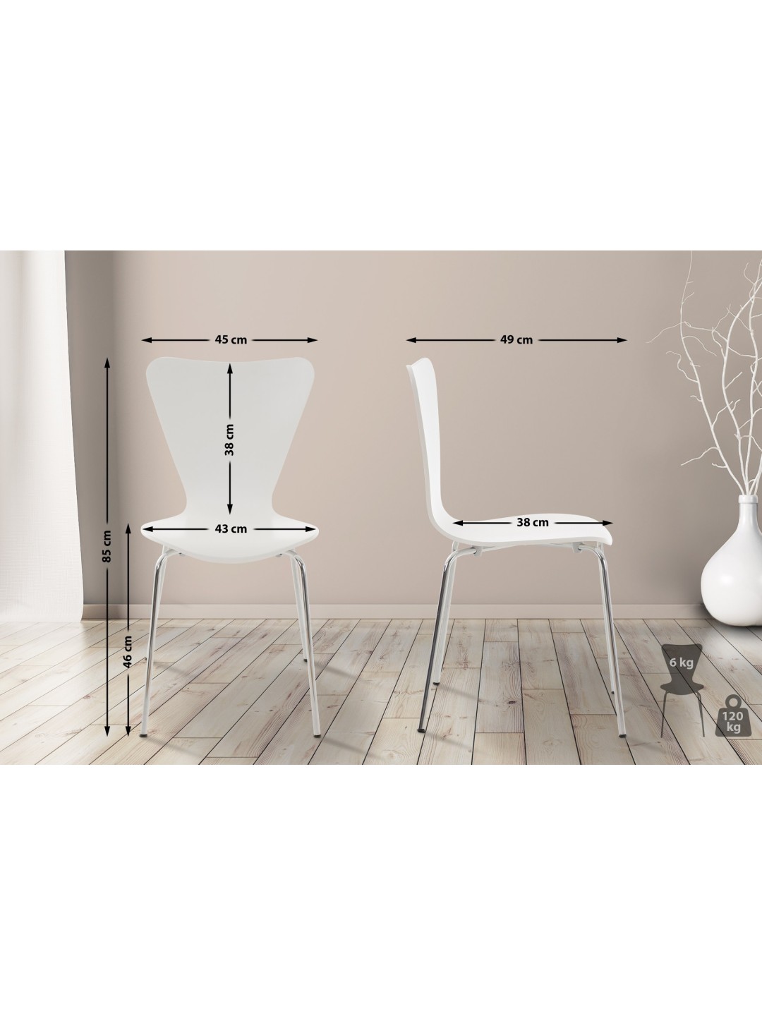 Denne besøgsstol er ideel til venteværelser, messer og andre arrangementer. Udover sit udseende og tidløse design er denne gæstestol særligt kendetegnet ved sit ergonomisk formede sæde, som gør, at selv længere siddeperioder ikke bliver anstrengende. Sædet er lavet af lakeret træ (farverne "eg" og "valnød" er lavet af ægte træfiner). Metalrammen i krom-look sikrer et stabilt og sikkert stativ. Når de ikke er i brug, kan stolene stables og opbevares for at spare plads.