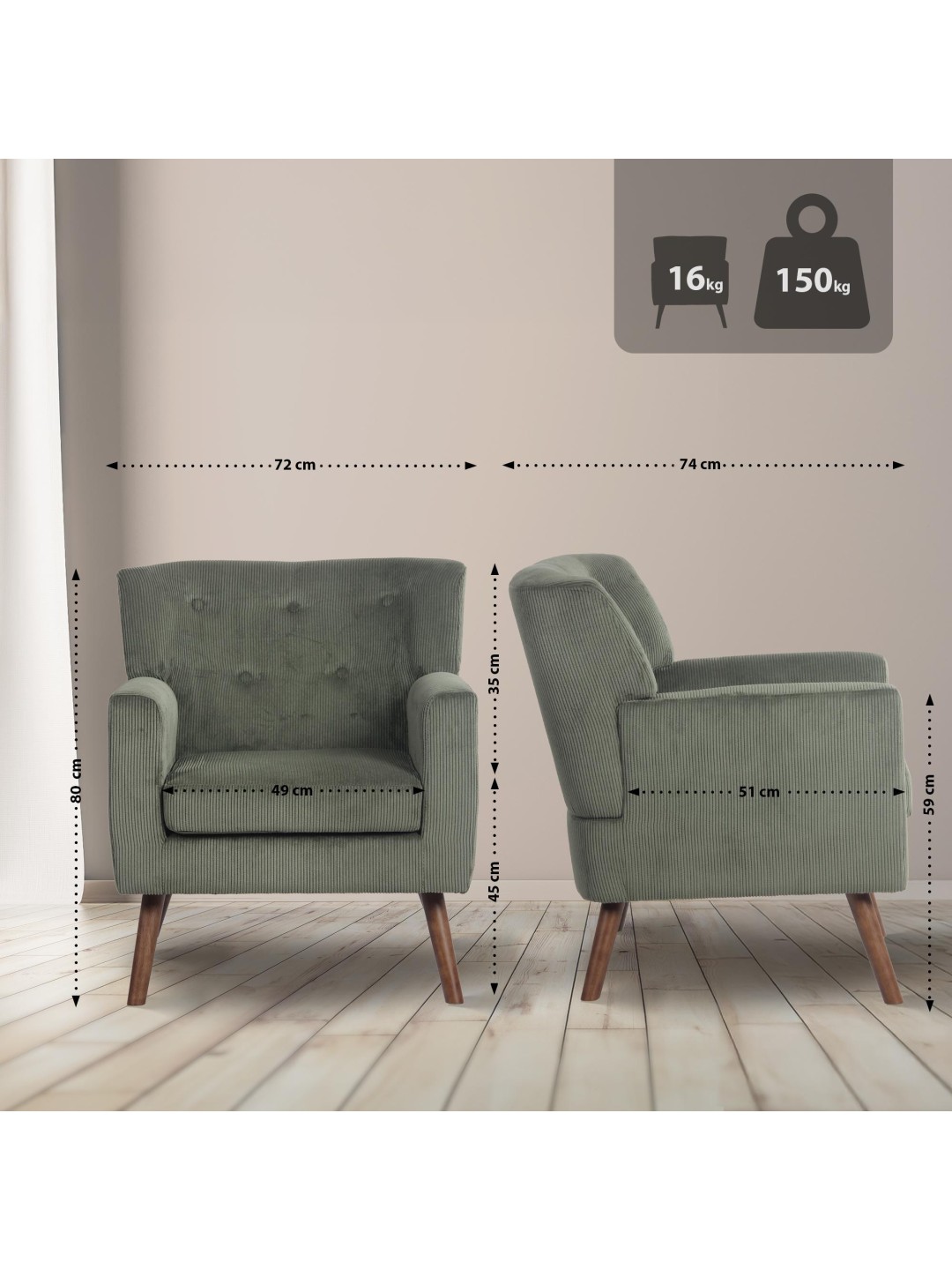 Lænestol Kioni Cord, grøn