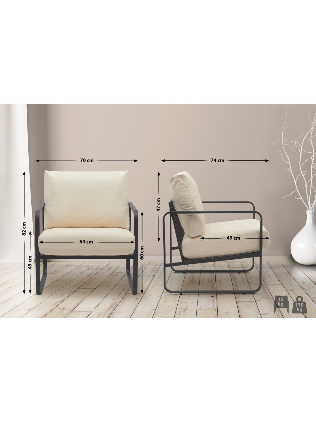 Højde armlæn: 60 cm