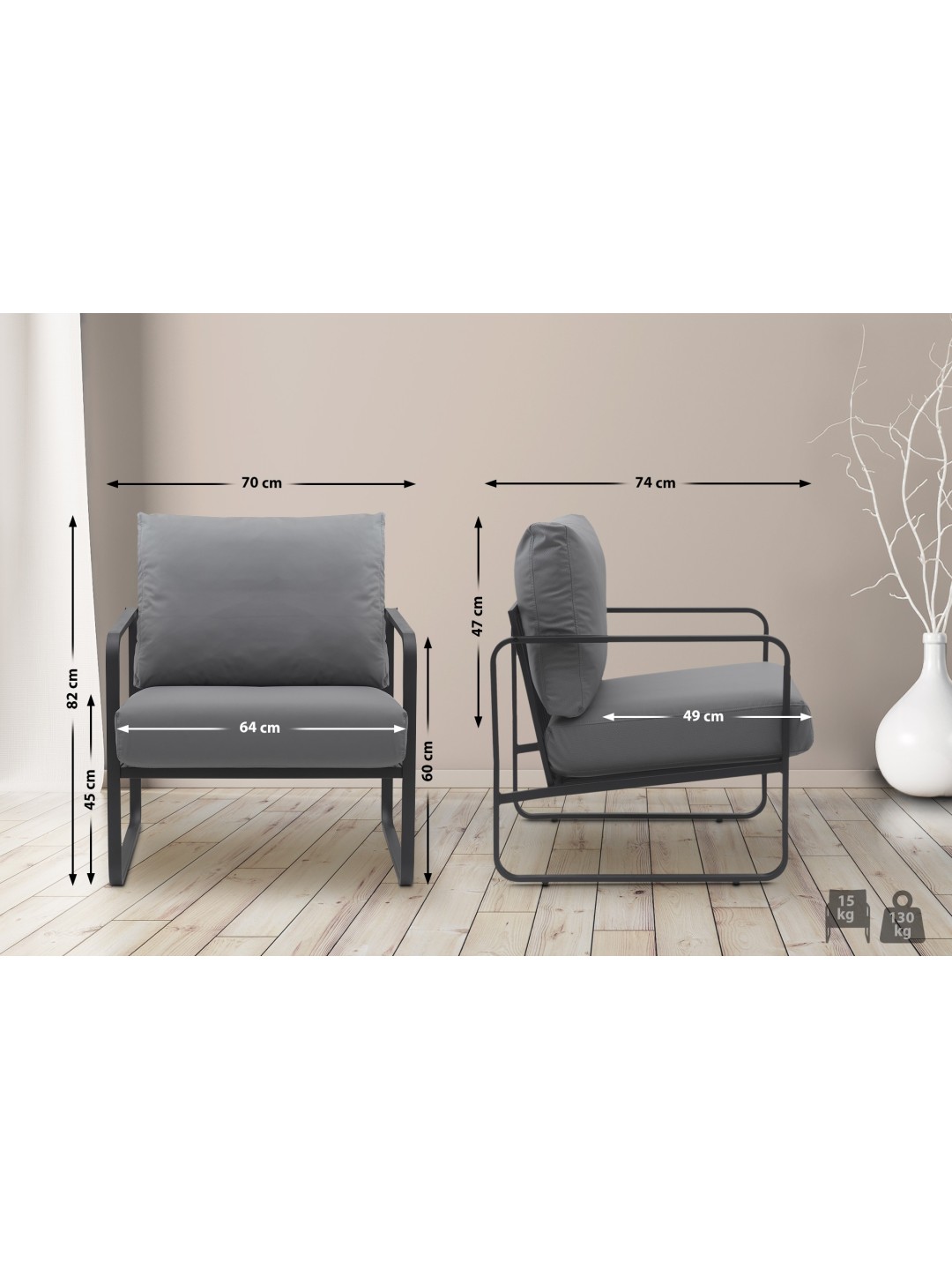 Højde armlæn: 60 cm