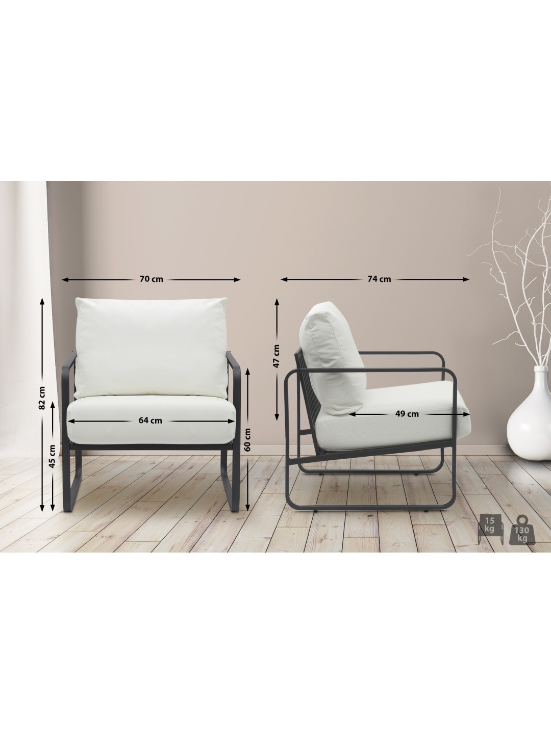 Højde armlæn: 60 cm