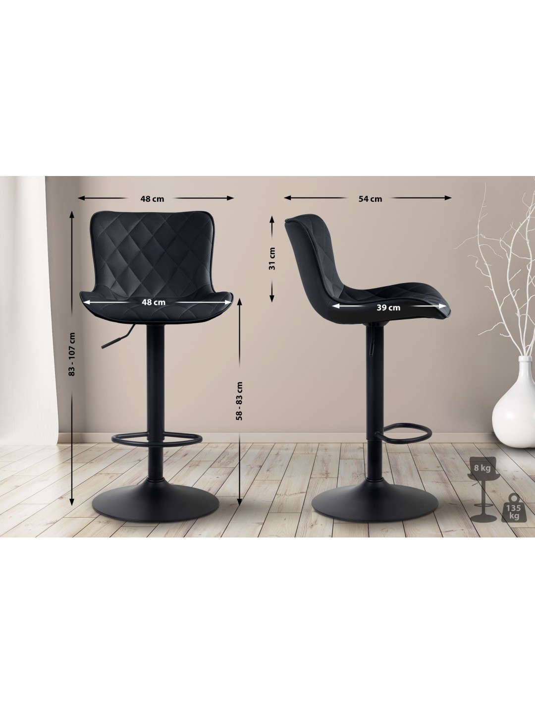 Total højde: 83 - 107 cm