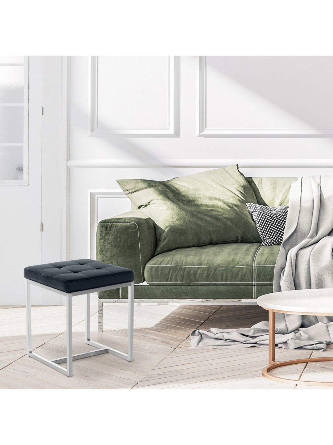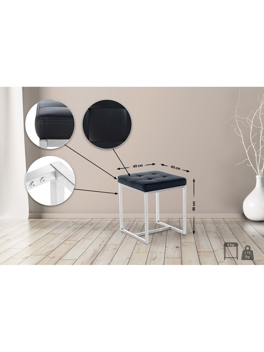 Vores Barci taburet imponerer som et behageligt, polstret kubussæde, der kan placeres på en række forskellige måder, fleksibelt og smukt. Og hvis du har brug for et bredere sæde, kan du lave en stabil bænk ud af flere taburetter. For at gøre dette indsættes et lille forbindelsesstykke (medfølger gratis) mellem to bundrammer af rustfrit stål, som automatisk fastgøres, når sæderne er installeret - så der kræves ikke yderligere materiale eller tid. Denne originale og nemme kombination er særligt praktisk, hvis du ønsker at bruge taburetten til forskellige formål - der er ingen grænser for det individuelle design, der passer til den respektive lejlighed. Og kreativitet kræves også til farvekombinationen, vælg den rigtige blandt de farver vi tilbyder.