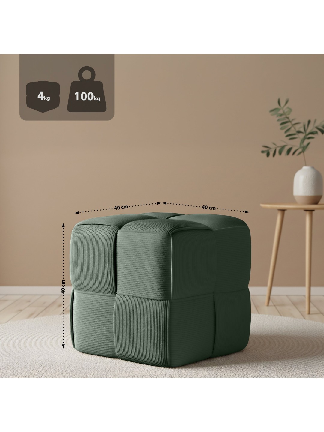 Taburet Forinta Cord, mørkegrøn
