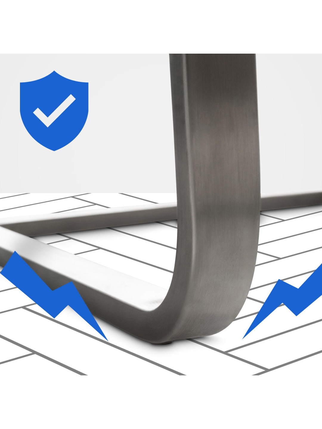 Rammen er lavet af robust, matbørstet rustfrit stål, som sikrer lang holdbarhed og stabilitet. Sæde og ryglæn er beklædt med et slidstærkt syntetisk læder og har tyk polstring, der sikrer høj siddekomfort. Det ergonomisk formede ryglæn understøtter den naturlige kropsholdning og reducerer trykket på taljen, hvilket er særligt fordelagtigt, når du sidder i længere perioder.