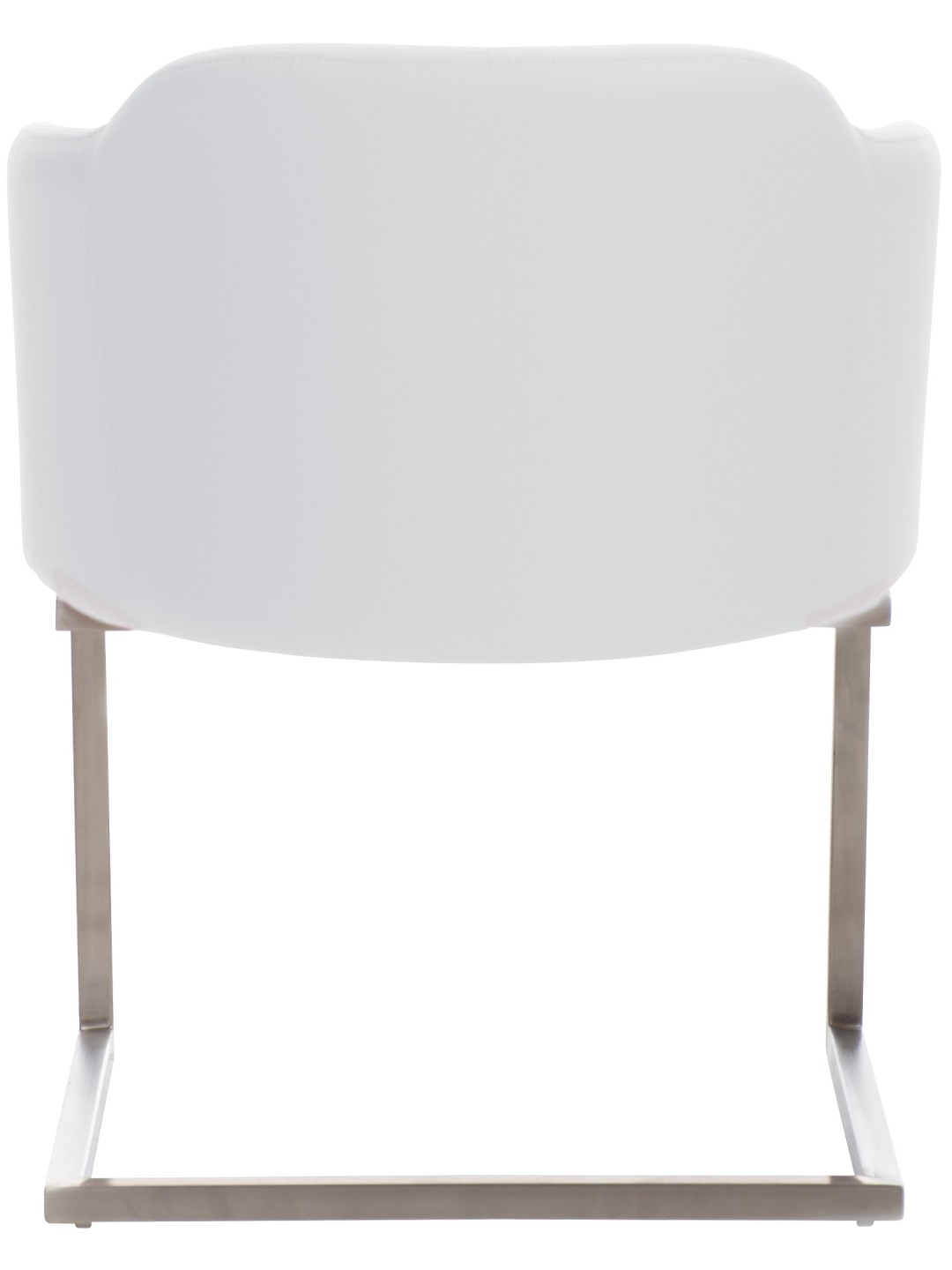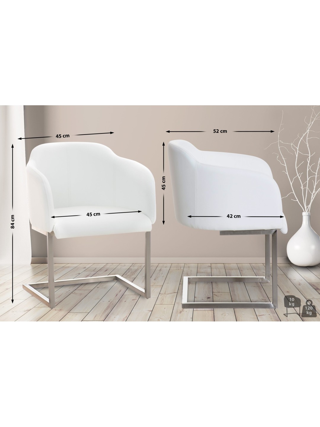Den lige udkragede stel af børstet rustfrit stål skaber et fantastisk blikfang, og sædets lille gyngen opfattes som meget behageligt. Ryglænet på sædet understøtter det nederste rygområde, mens sædet og ryglænet er generøst polstret. Polstret har et slidstærkt imiteret læderbetræk, der er let at pleje.