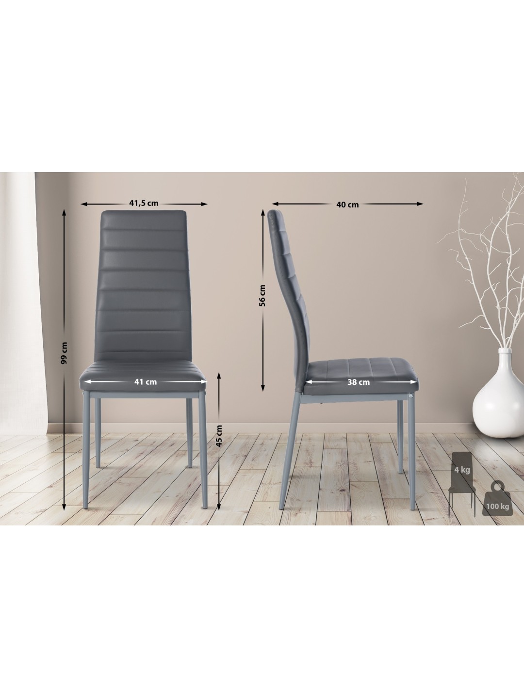 Fundamentet for denne spisestuestol er det stabile firbenede stel af robust metal. Mayfair stolen kan belastes med op til 100 kg uden tøven. Gulvbeskyttere forhindrer skader på følsomme gulve. Forskellige farver er tilgængelige at vælge imellem.