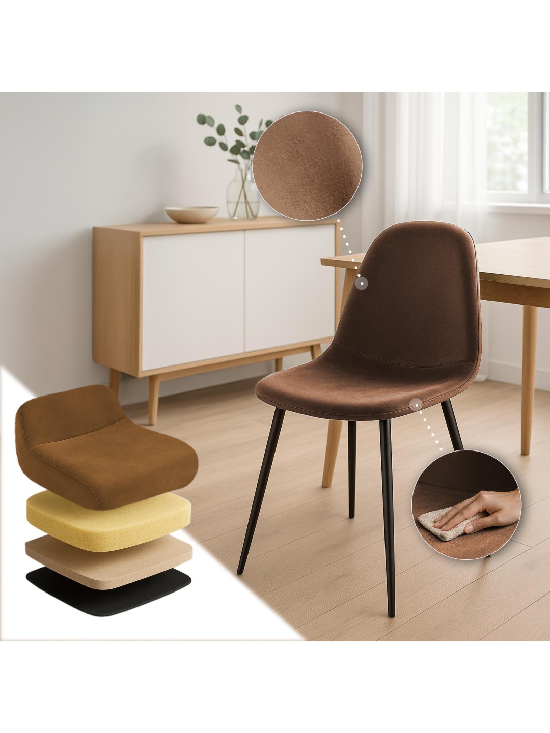 Napier spisestuestol i fløjl, brun
