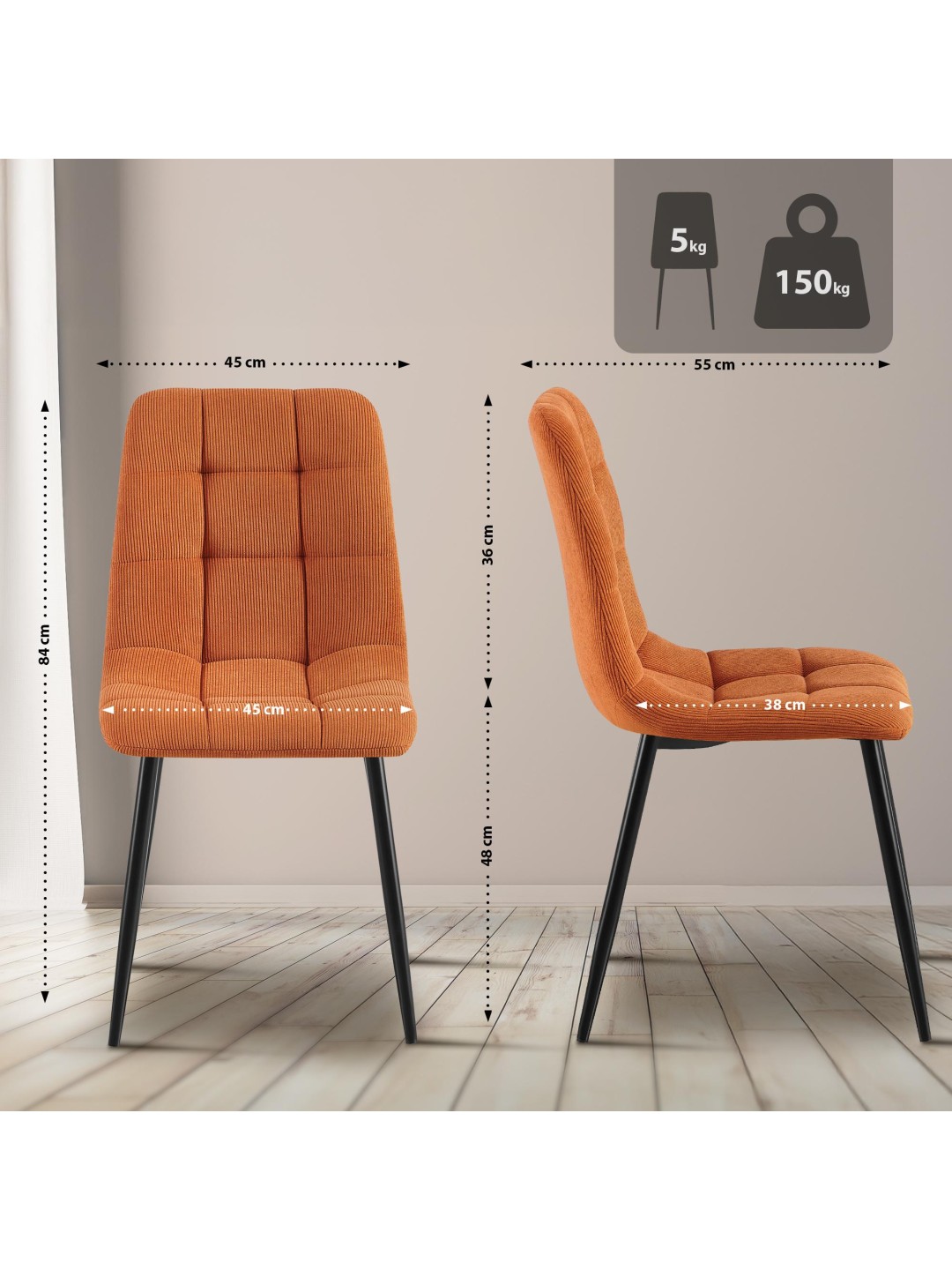 Sæt med 2 spisestuestole Antibes Cord, orange