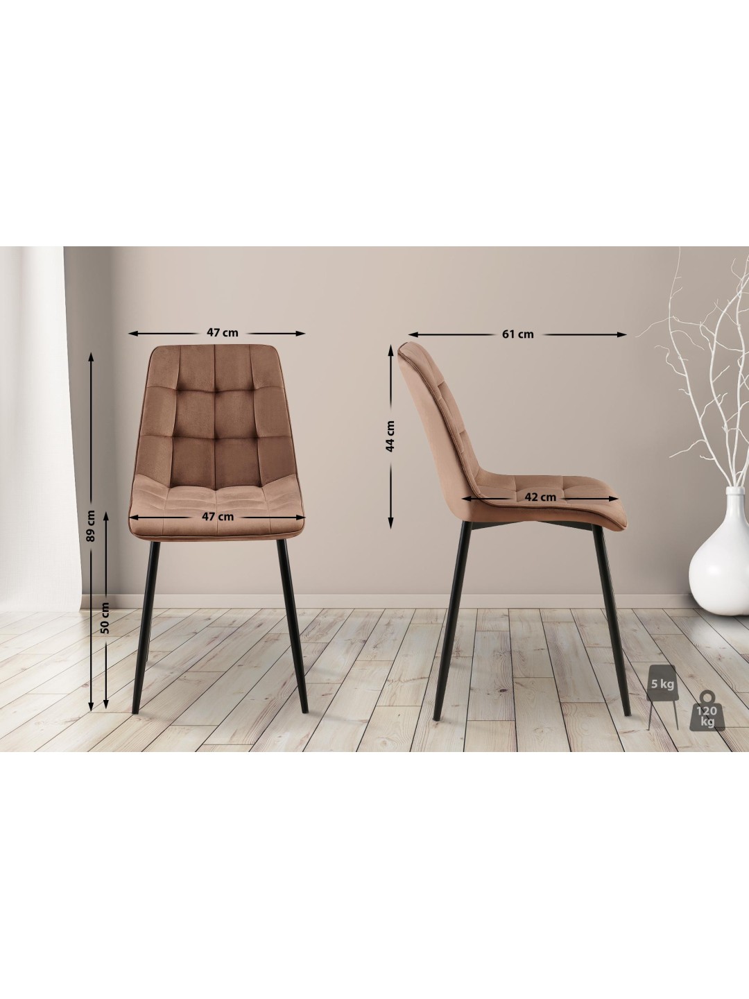 Sæt med 2 spisestuestole Gifford velvet, brun