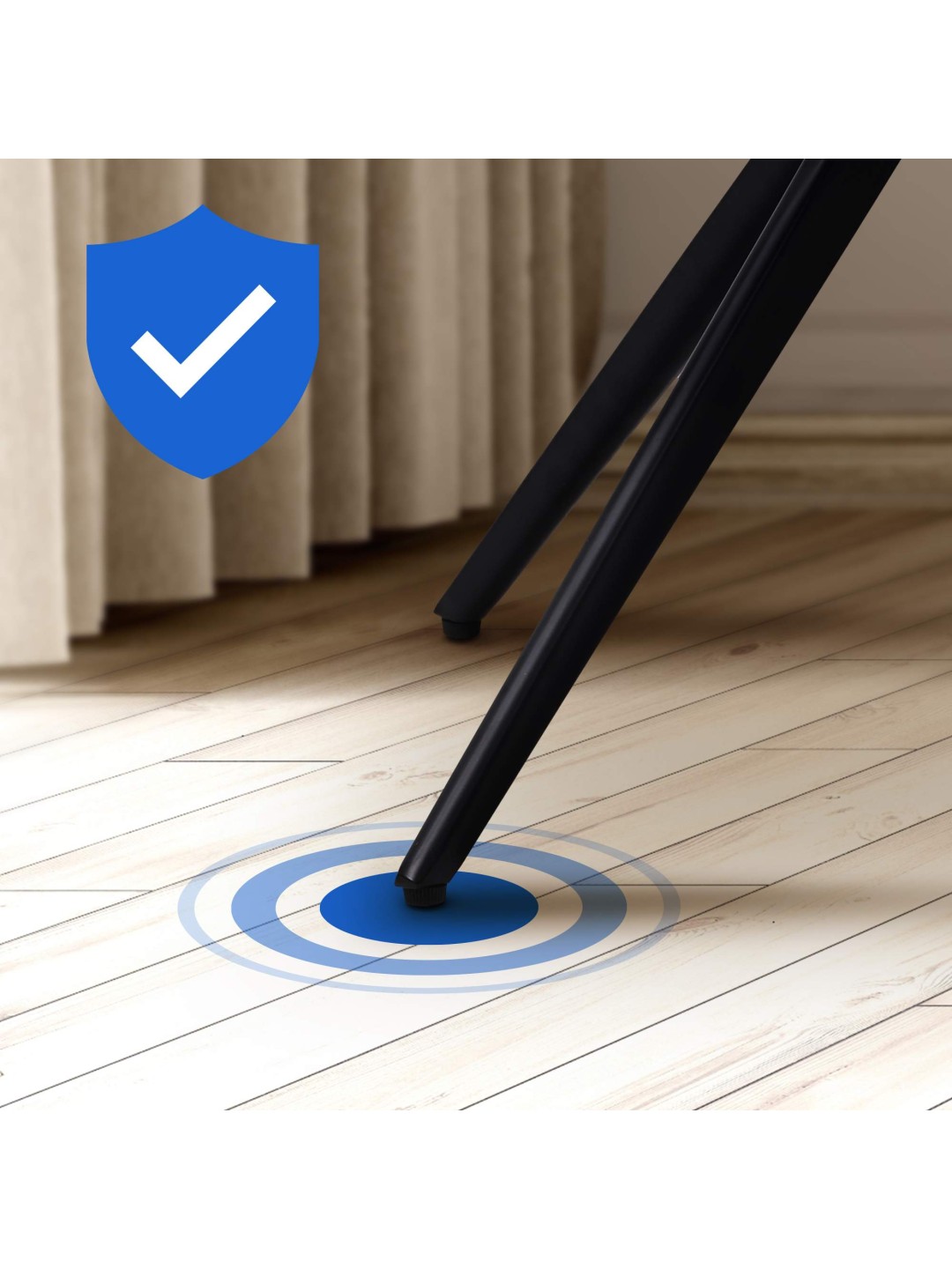 Fundamentet for denne køkkenstol er det matsorte firbenede stel af pulverlakeret metal. Merna spisestuestolen kan belastes med op til 120 kg uden tøven. Gulvbeskyttere forhindrer følsomme gulve i at blive beskadiget.