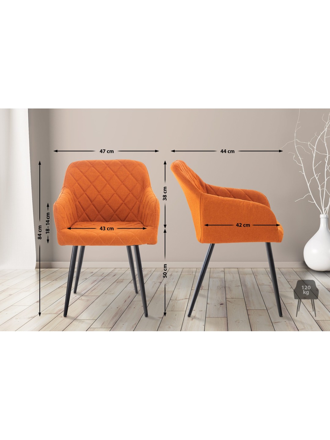 siddeegenskaber. Stolene har et generøst polstret sæde og giver dig mulighed for at sidde komfortabelt i flere timer. De polstrede stoles armlæn og ryglæn giver ekstra komfort. Den firbenede metalramme lover stabilitet og et sikkert stativ. Disse lænestole passer fantastisk ind i spisestuen, stuen eller arbejdsværelset, og deres tidløse look gør dem alsidige. Stolesættet fås med enten fløjlsbetræk eller stofbetræk. Stolene er desuden udstyret med gulvbeskyttere for at forhindre ridser.