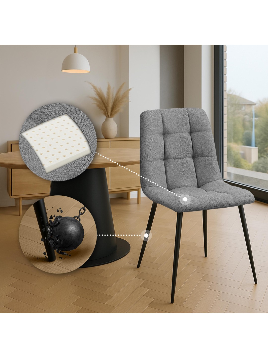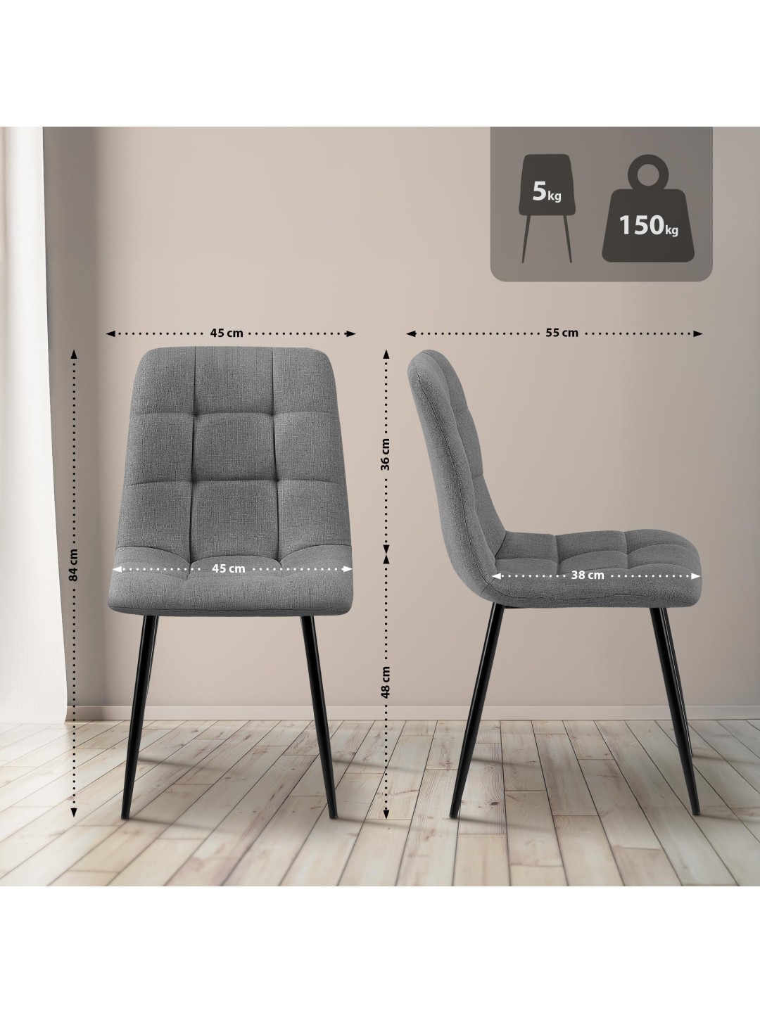 Dette sæt bestående af to Tilde spisestuestole kombinerer høj siddekomfort med et moderne og tidløst look. Disse polstrede stole er et godt valg til dit spisebord, køkken, stue, men også til andre formål.