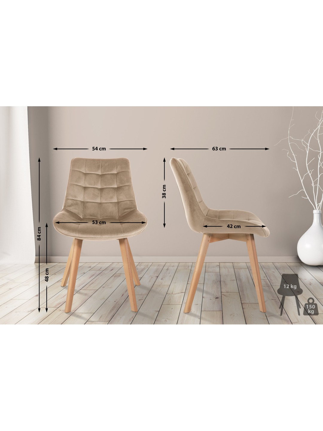 Sættet med 2 Brook-stole med fløjlsbetræk beriger moderne rum perfekt og tiltrækker opmærksomhed i alle rum. Med sit komfortable ryglæn og behagelige polstring muliggør den også langvarig siddekomfort. Støttet af en moderne 4-fods træramme, ser stolen fordelagtig ud ved enhver lejlighed. Der er også gulvbeskyttere på fødderne for at beskytte gulvet mod ridser. Takket være brugen af ​​plejevenlige materialer kan spisebordsstolen let rengøres til enhver tid.