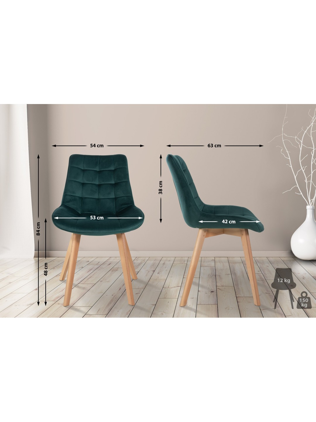 Sættet med 2 Brook-stole med fløjlsbetræk beriger moderne rum perfekt og tiltrækker opmærksomhed i alle rum. Med sit komfortable ryglæn og behagelige polstring muliggør den også langvarig siddekomfort. Støttet af en moderne 4-fods træramme, ser stolen fordelagtig ud ved enhver lejlighed. Der er også gulvbeskyttere på fødderne for at beskytte gulvet mod ridser. Takket være brugen af ​​plejevenlige materialer kan spisebordsstolen let rengøres til enhver tid.