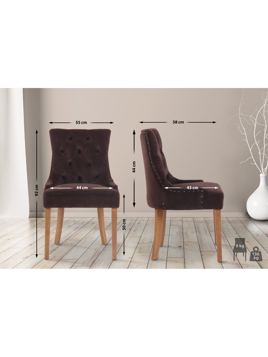 Din stemning bliver stilfuldt oplivet af sættet med 4 Aberdeen-fløjl-spisestuestole. De polstrede sæder er betrukket med fløjl og har flotte dekorative syninger og knapper. Dette stolesæt er en smagfuld tilføjelse til spisestuen, køkkenet og andre opholdsrum. Hver stol står på et firbenet gummitræstel og skaber en hyggelig atmosfære.