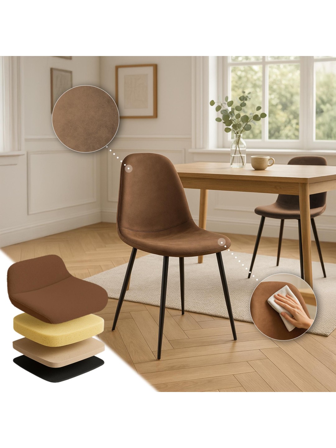 Sæt med 4 spisestuestole Napier imiteret læder, brun