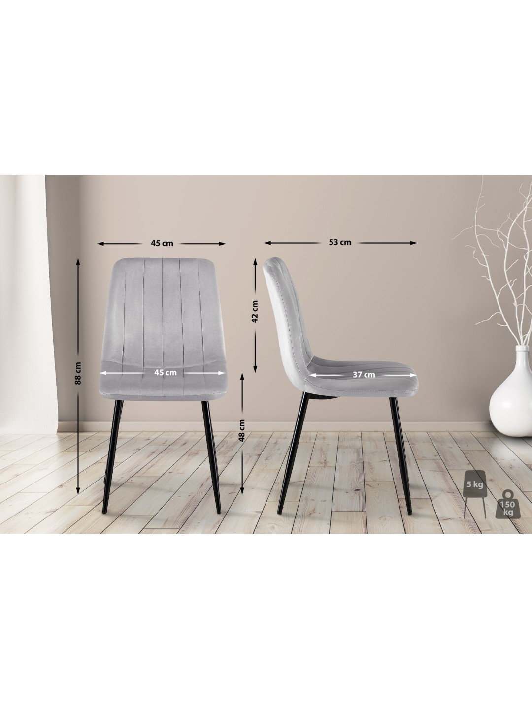 I et moderne, tidløst design er sættet med 4 Dijon stole en smagfuld tilføjelse til ethvert boligmiljø. Dens komfortabelt polstrede sæder lover langvarig komfort. Overfladerne lavet af slidstærkt stof eller fløjl er nemme at pleje. Fine dekorative sømme er en fin detalje. Der er gulvbeskyttere under den robuste 4-fods metalramme. Dette gør sættet velegnet til følsomme gulvbelægninger som fliser og parket. Sættet fås i forskellige farver og med forskellige sædebetræk. Det tilbyder familien og gæsterne et stilfuldt sted at sidde.