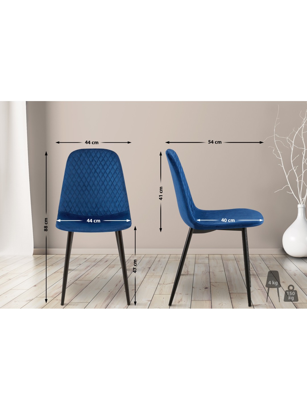 De robuste sorte metalstel sikrer stabilitet og en høj bæreevne på op til 150 kg for hver stol. Integrerede gulvbeskyttere beskytter følsomme overflader som parket eller fliser mod ridser og gør det samtidig nemt at flytte dem. Med en behagelig siddehøjde på 47 cm giver stolene den bedste komfort - selv til lange middage med familie eller venner.
