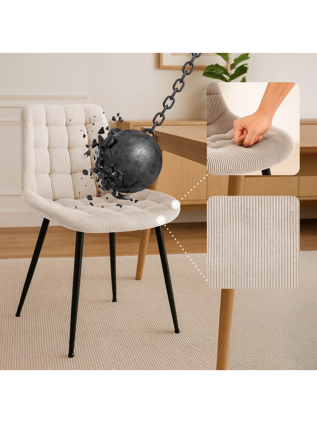 Sardna Cord spisestuestol, creme