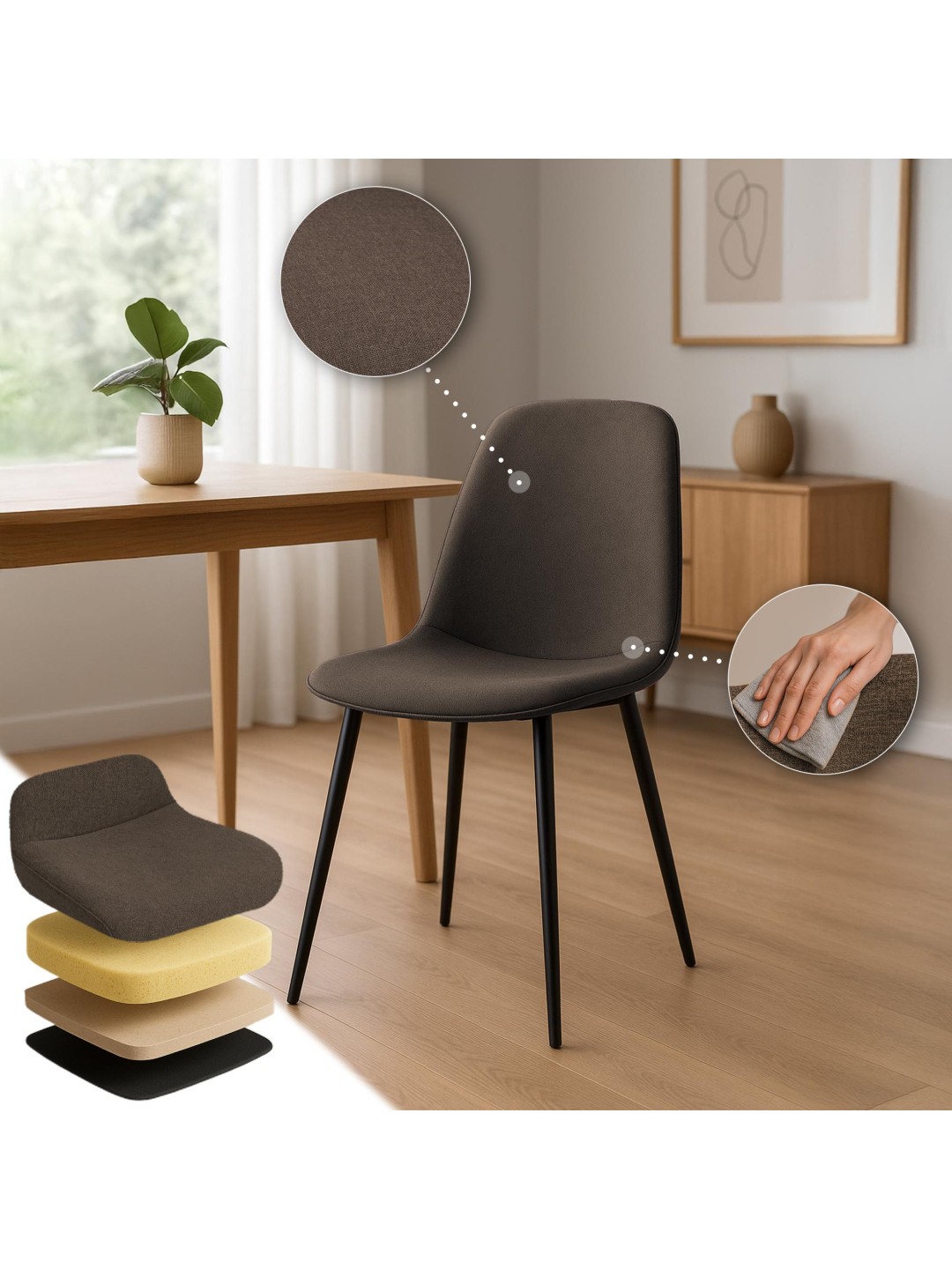 Fundamentet for denne spisestuestol er det stabile firbenede stel lavet af sort, pulverlakeret metal. Maryam stolen kan belastes med op til 150 kg uden tøven. Gulvbeskyttere forhindrer skader på følsomme gulve.