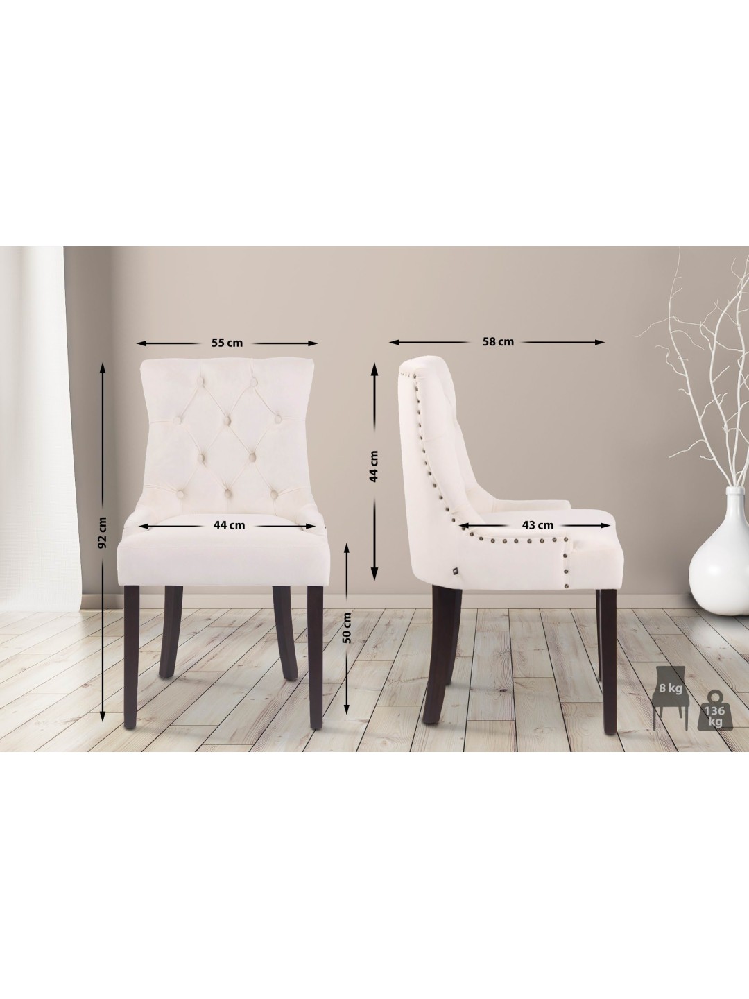 Spisestuestol Aberdeen fløjl antik, creme