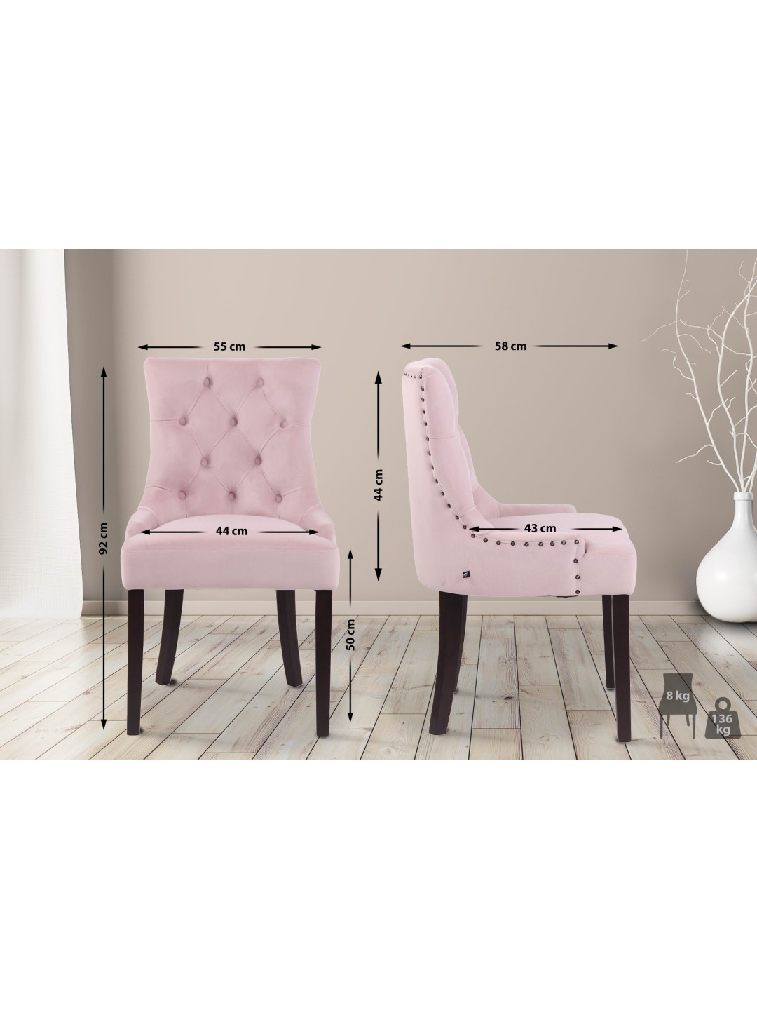 Spisestuestol Aberdeen fløjl antik, pink