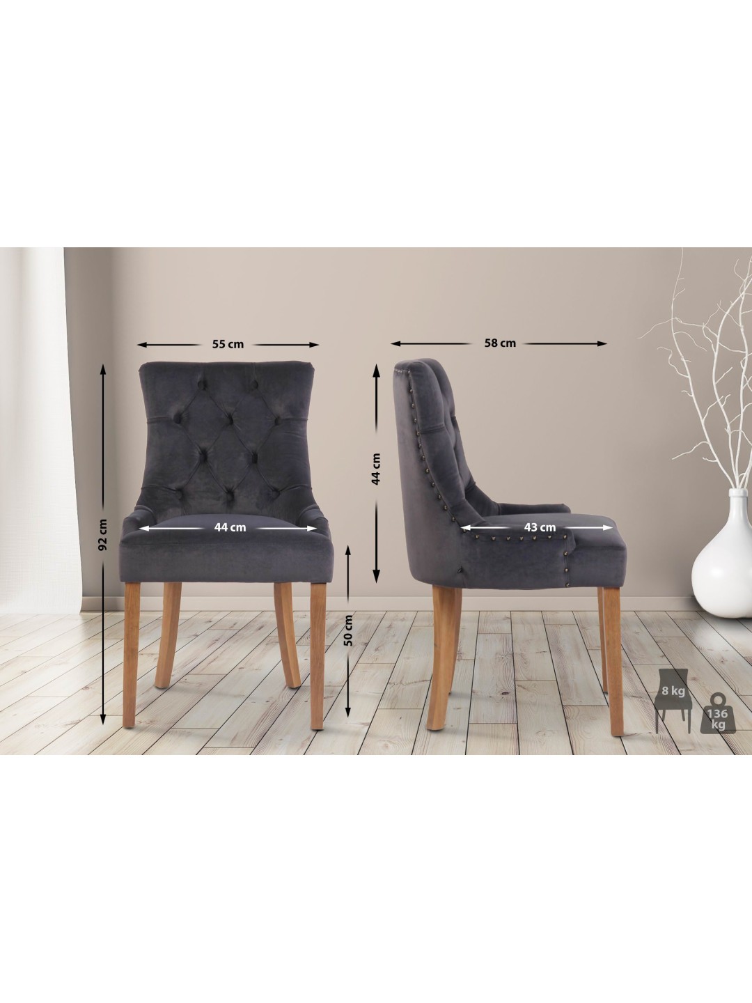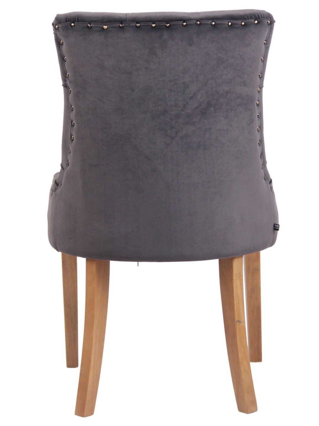 Din stemning bliver stilfuldt oplivet af Aberdeen spisestuestolen. Med et polstret sæde beklædt med fløjl og smukke dekorative syninger og knapper skaber denne stol et smagfuldt design. Denne lænestol står stabilt og stabilt på et firbenet stel af gummitræ. Det er et behageligt, solidt og samtidig stilrent sæde til hverdagsbrug og det perfekte supplement til moderne rum.