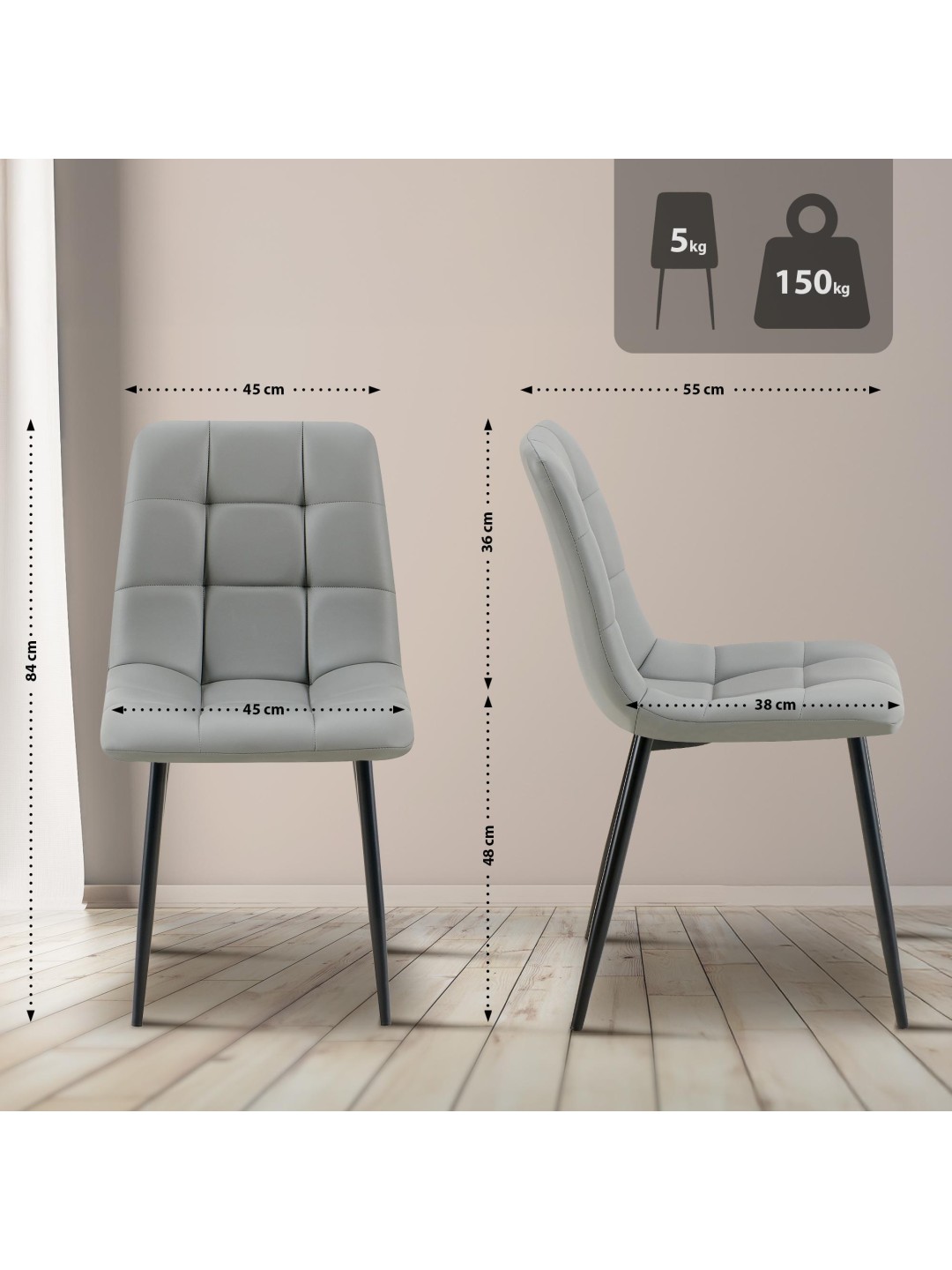 Spisestuestol Antibes imiteret læder, lysegrå
