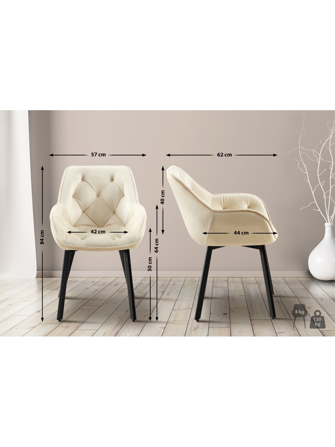 Spisestuestol Antigo fløjl, creme