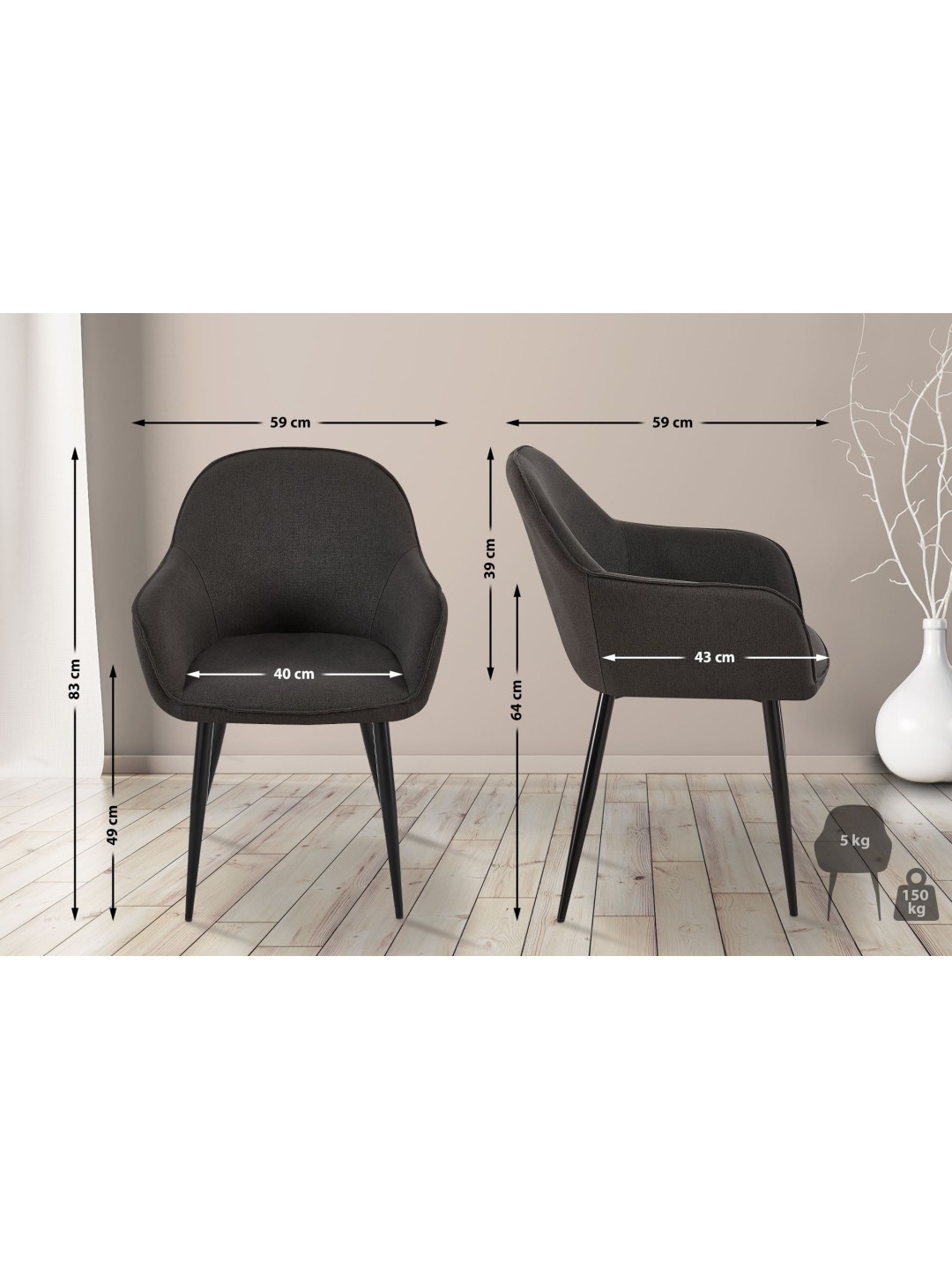 Spisestuestol Boise stof, sort