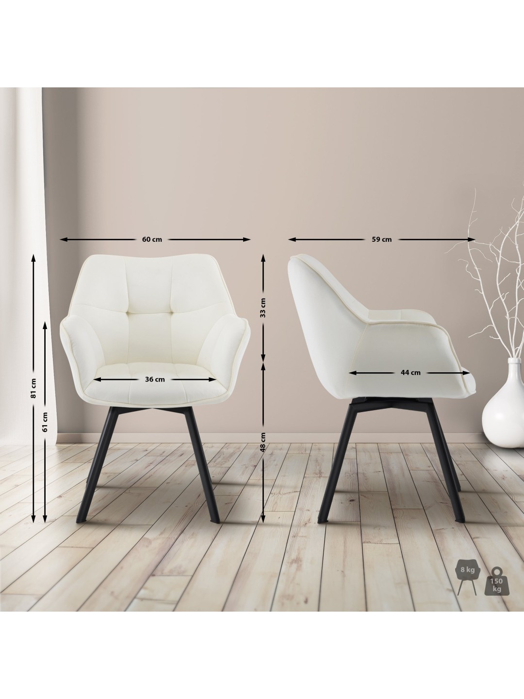 Denne Jordi spisestuestol kombinerer moderne stil med enestående komfort. Det bløde fløjlsbetræk i kombination med den generøse polstring på sæde, ryglæn og armlæn sikrer en behagelig siddeoplevelse, selv under længere måltider eller samtaler. Den robuste metalramme tilbyder ikke kun et sikkert stativ, men er også ekstremt fleksibelt takket være den integrerede roterende funktion. Stolen kan drejes 90 grader til højre og venstre og vender automatisk tilbage til udgangspositionen.