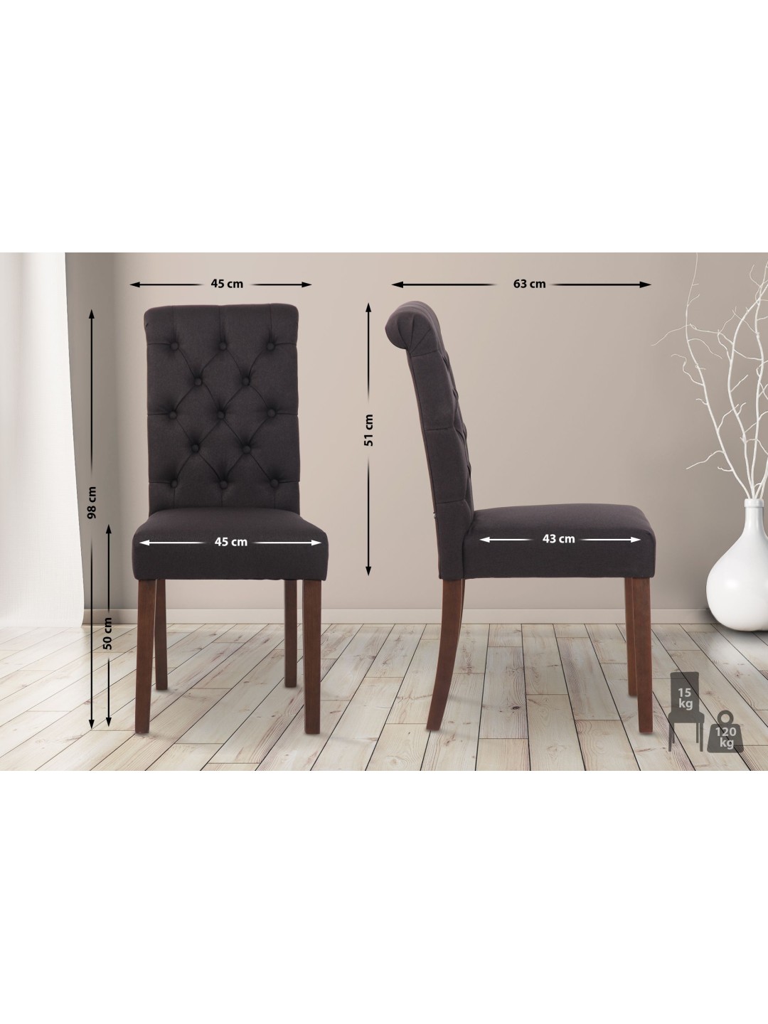 Lisburn spisestuestolen er en komfortabel, solid og samtidig stilfuld siddemulighed til hverdagsbrug og den perfekte tilføjelse til klassisk indrettede rum. Det høje ryglæn og den behagelige og behagelige polstring giver dig mulighed for at sidde komfortabelt selv i længere tid. Denne lænestol står stabilt og stabilt på et firbenet stel af gummitræ. Udstyret med gulvbeskyttere under fødderne forhindres ridser og skader på gulvet. Ydermere kan spisestuestolen til enhver tid rengøres hurtigt og nemt takket være de plejevenlige materialer.