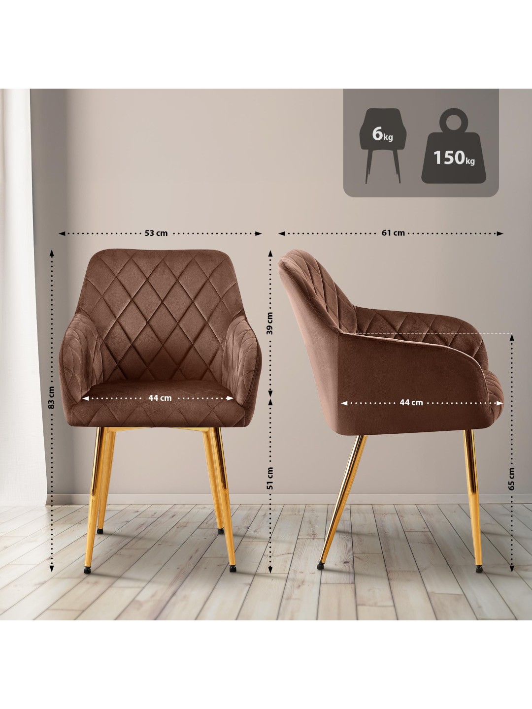 Spisestuestol Monett fløjl G, brun