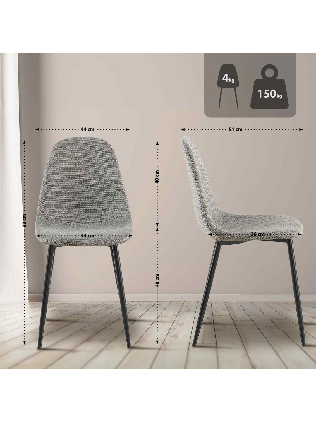 Fundamentet for denne spisestuestol er det stabile firbenede stel lavet af sort, pulverlakeret metal. Det betyder, at Napier stolen sikkert kan belastes med op til 150 kilo. Gulvbeskyttere forhindrer skader på følsomme gulve.