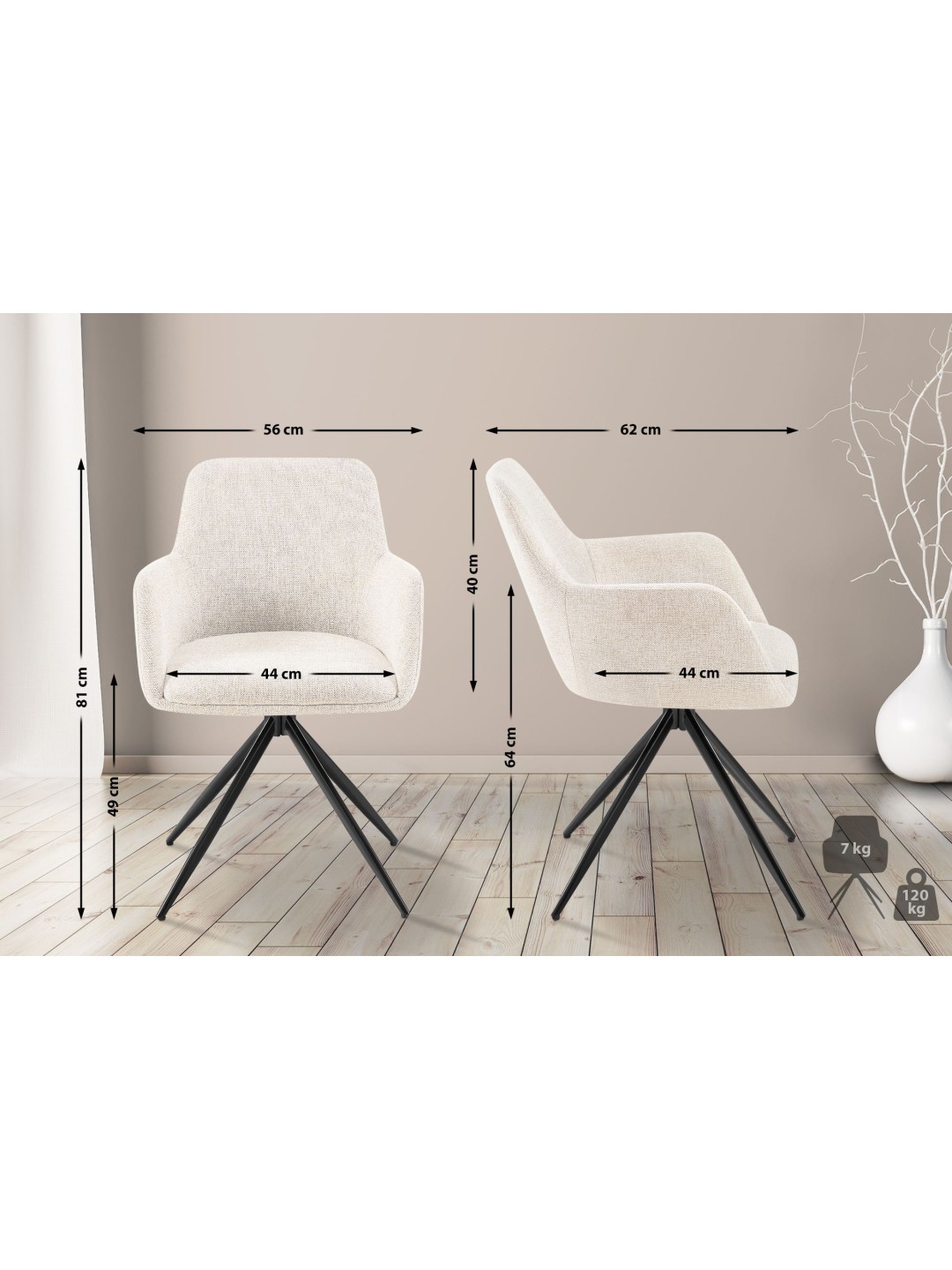 Fundamentet for denne lænestolslignende stol er det matsorte firbenede stel af pulverlakeret metal. Det betyder, at Olema spisestuestolen kan belastes sikkert med op til 120 kilo.