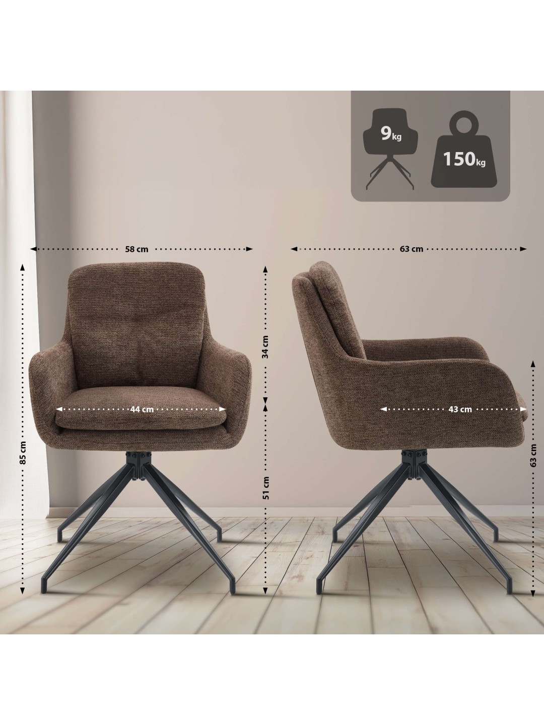 Spisestuestol Pickett stof, brun