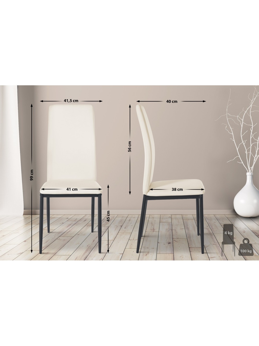 Fundamentet for denne spisestuestol er det stabile firbenede stel af robust metal. Savino stolen kan belastes med op til 100 kg uden tøven. Gulvbeskyttere forhindrer skader på følsomme gulve. Forskellige farver er tilgængelige at vælge imellem.