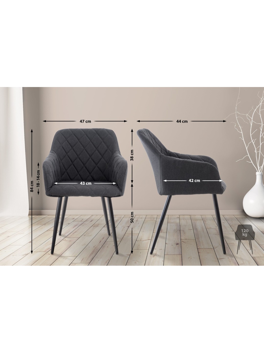 Shila spisestuestolen er en komfortabel men stilfuld siddemulighed til hverdagsbrug. Stolen har et generøst polstret sæde og giver derfor mulighed for behageligt at sidde selv over længere tid. Siddekomforten suppleres af ryglæn og armlæn. Den firbenede metalramme lover stabilitet og sikker stående. Denne spisestuestol giver et moderne flair og komplementerer ethvert boligmiljø vidunderligt. Der er også gulvbeskyttere under fødderne for at forhindre, at gulvet bliver ridset. Spisestuestolen fås med enten fløjl eller stofbetræk.