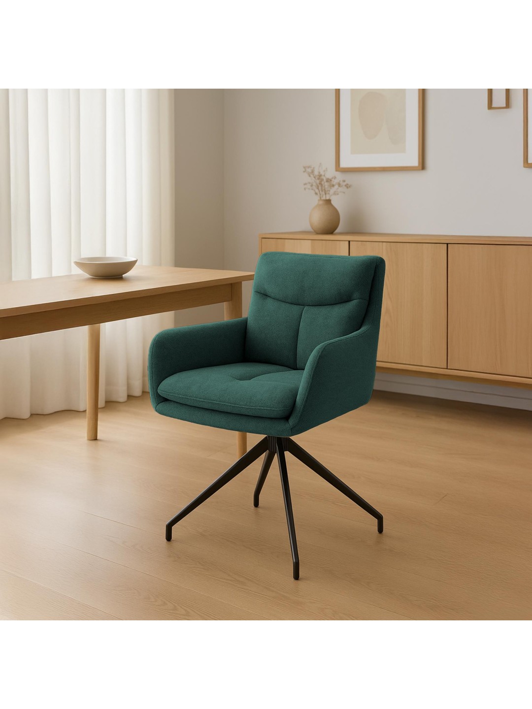 Nøglen til et behageligt sæde er den behagelige polstring på sæde, ryglæn og armlæn. Sædeskallen er beklædt med et moderne og robust stofbetræk.