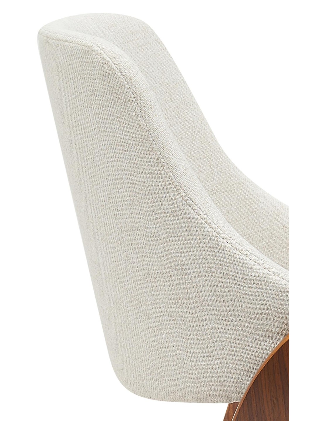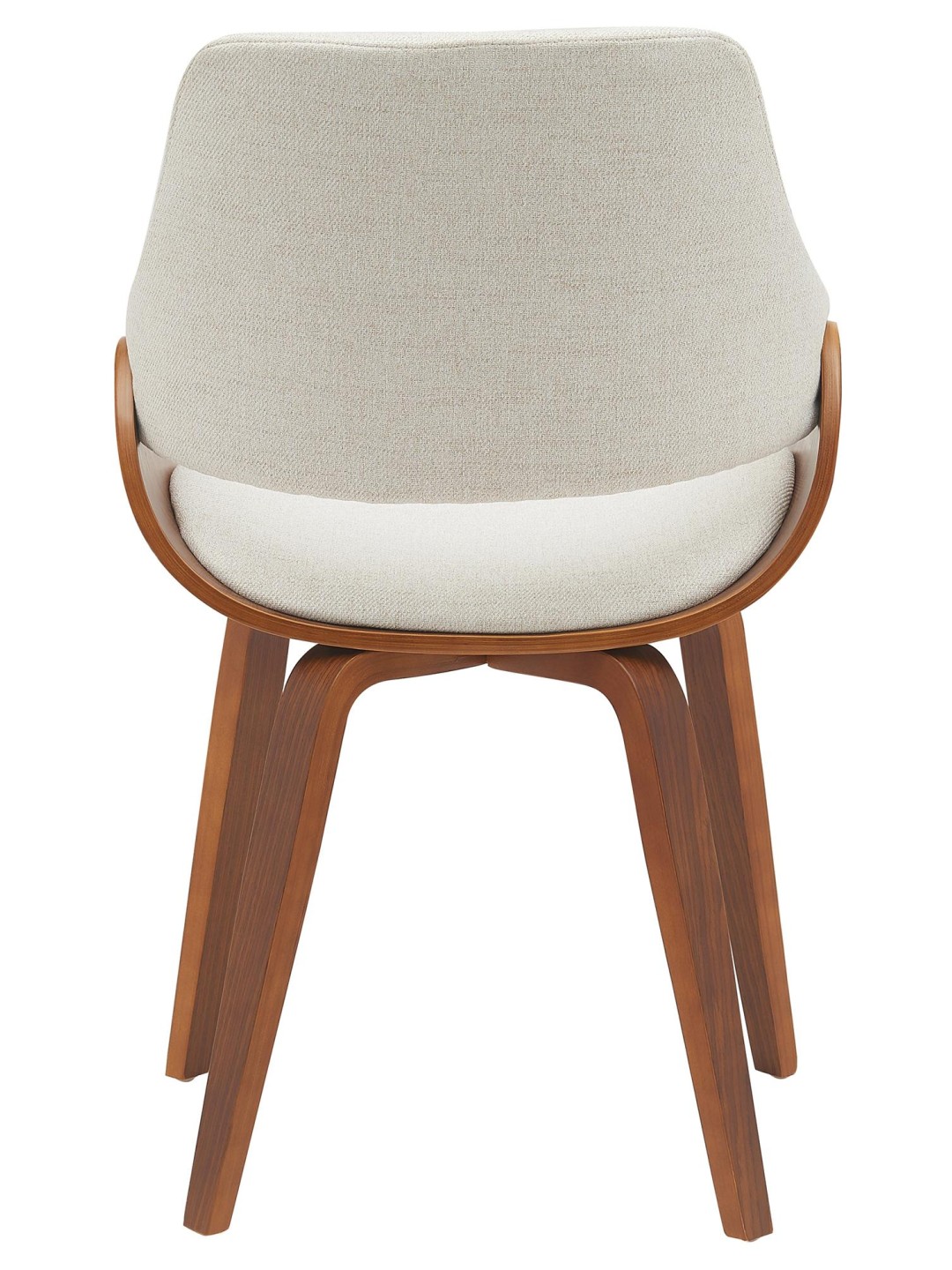Stolestellet er lavet af bøjet træ af høj kvalitet, som lover enestående holdbarhed. Sammen med valnøddelooket og de smukke træårer er den polstrede stol et godt blikfang.