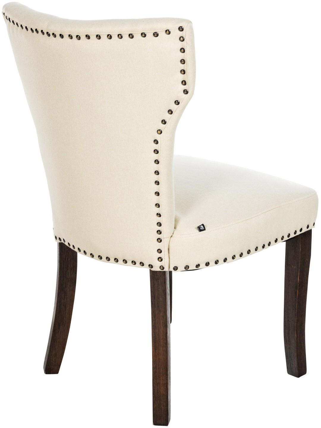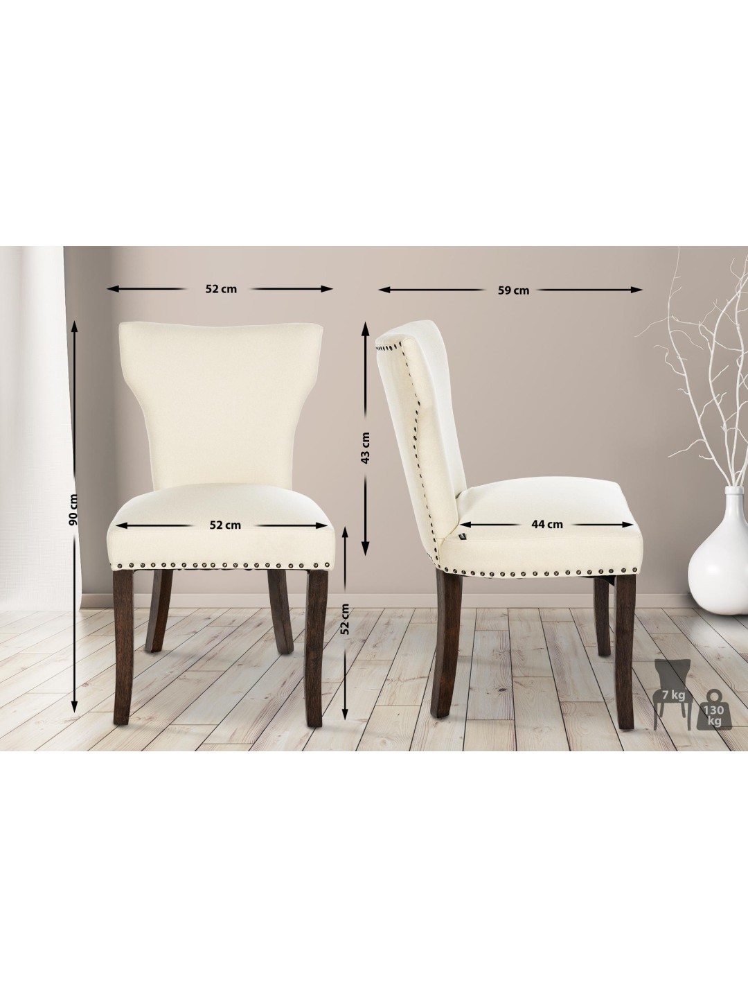 Stofbetræk med et attraktivt look og den subtile nittedekoration giver stolen en tidløs elegance, der fremhæver enhver spisestue. Landhusstolen er alsidig og passer ikke kun perfekt i spisestuen, men også i andre opholdsområder og køkkenet.