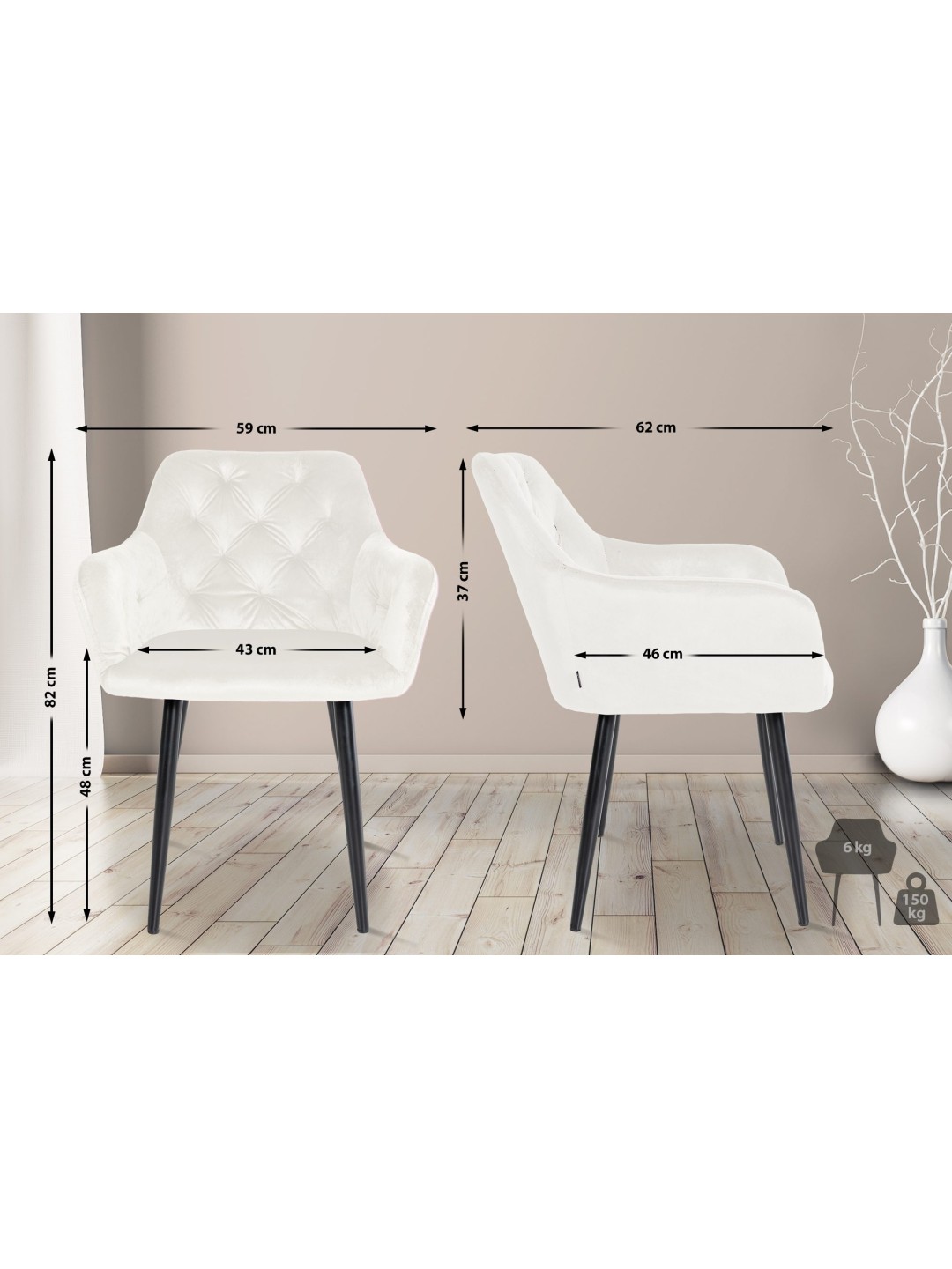 Stanley spisestuestol i fløjl, creme