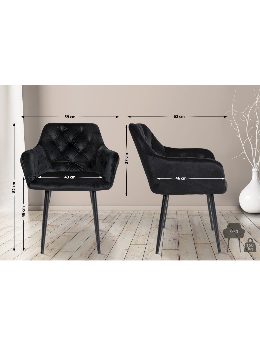 Stanley spisestuestol i fløjl, sort