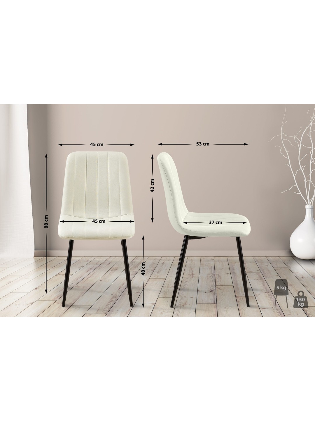 En robust metalramme garanterer en bæreevne på op til 150 kg og giver sikker siddeplads. Den sortlakerede stelfarve giver stolen et elegant præg, mens sædepolstringen giver ekstra komfort. Stolen leveres delvist samlet, hvilket gør slutmontering til en leg.