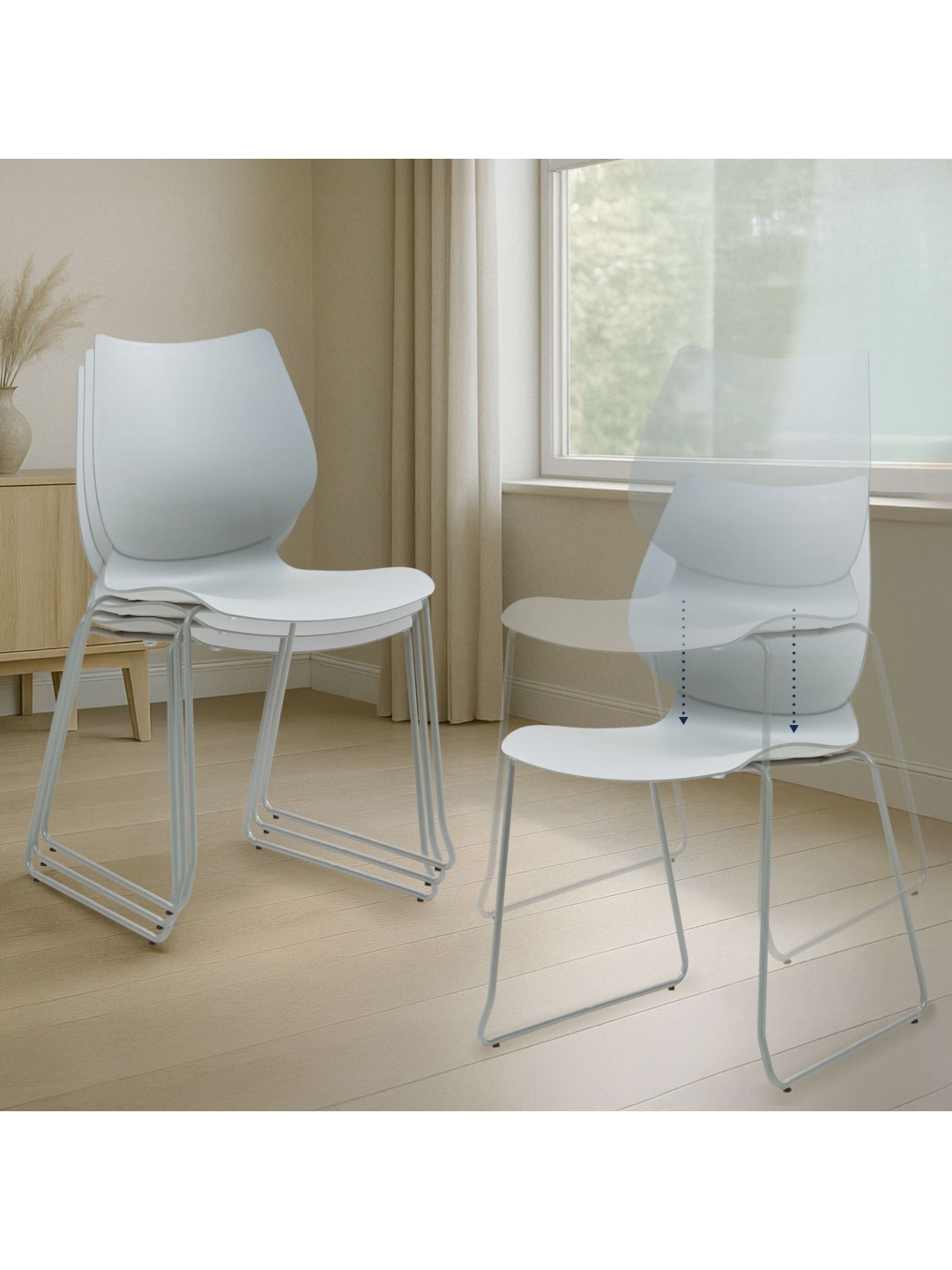 Stolen imponerer med sit praktiske og æstetiske design. Dens lette vægt og evnen til at stable den op til 8 niveauer gør den nem at opbevare - perfekt til fleksible rumlayouts. Trods sin lethed garanterer den robuste konstruktion en bæreevne på op til 135 kg, hvilket sikrer lang levetid og modstand.