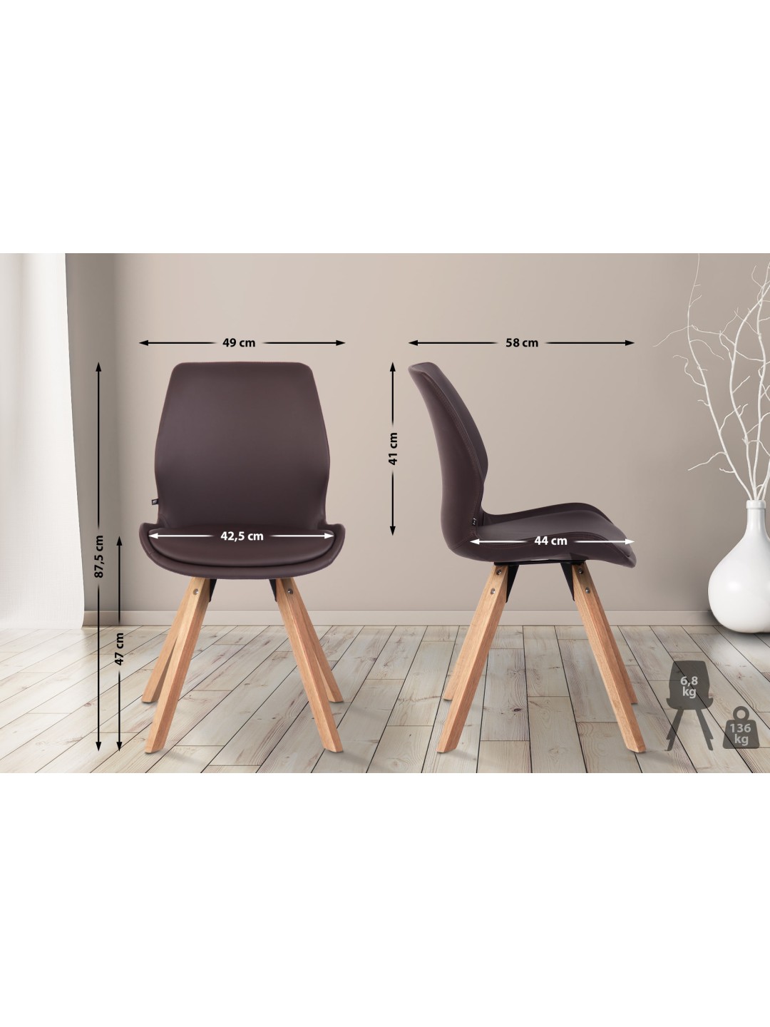 Opdag den moderne Luna spisestuestol, ideel til stilfulde spisestuer og opholdsområder. Med en sædehøjde på 47 cm tilbyder denne stol fremragende komfort og ergonomi.