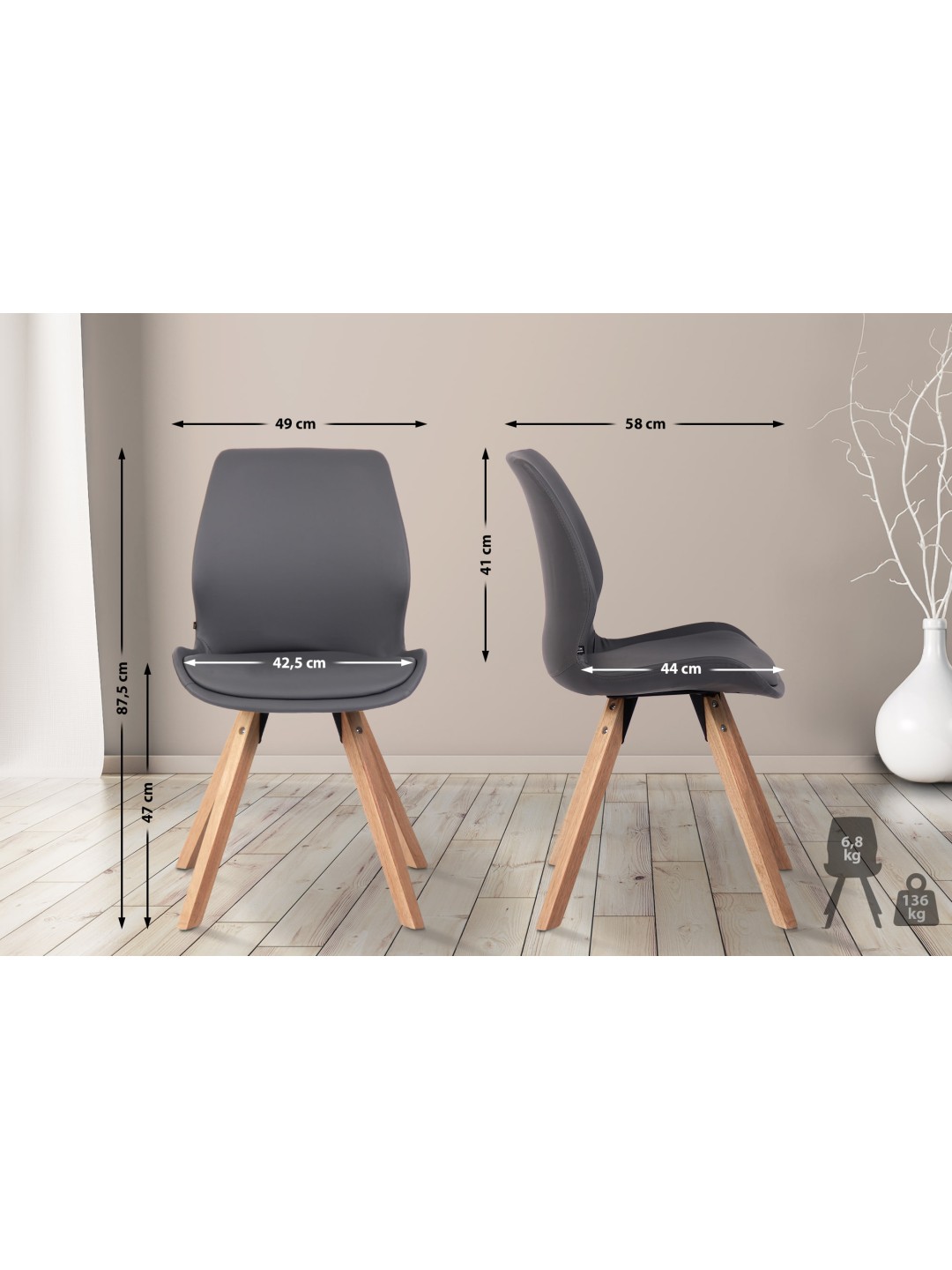 Opdag den moderne Luna spisestuestol, ideel til stilfulde spisestuer og opholdsområder. Med en sædehøjde på 47 cm tilbyder denne stol fremragende komfort og ergonomi.