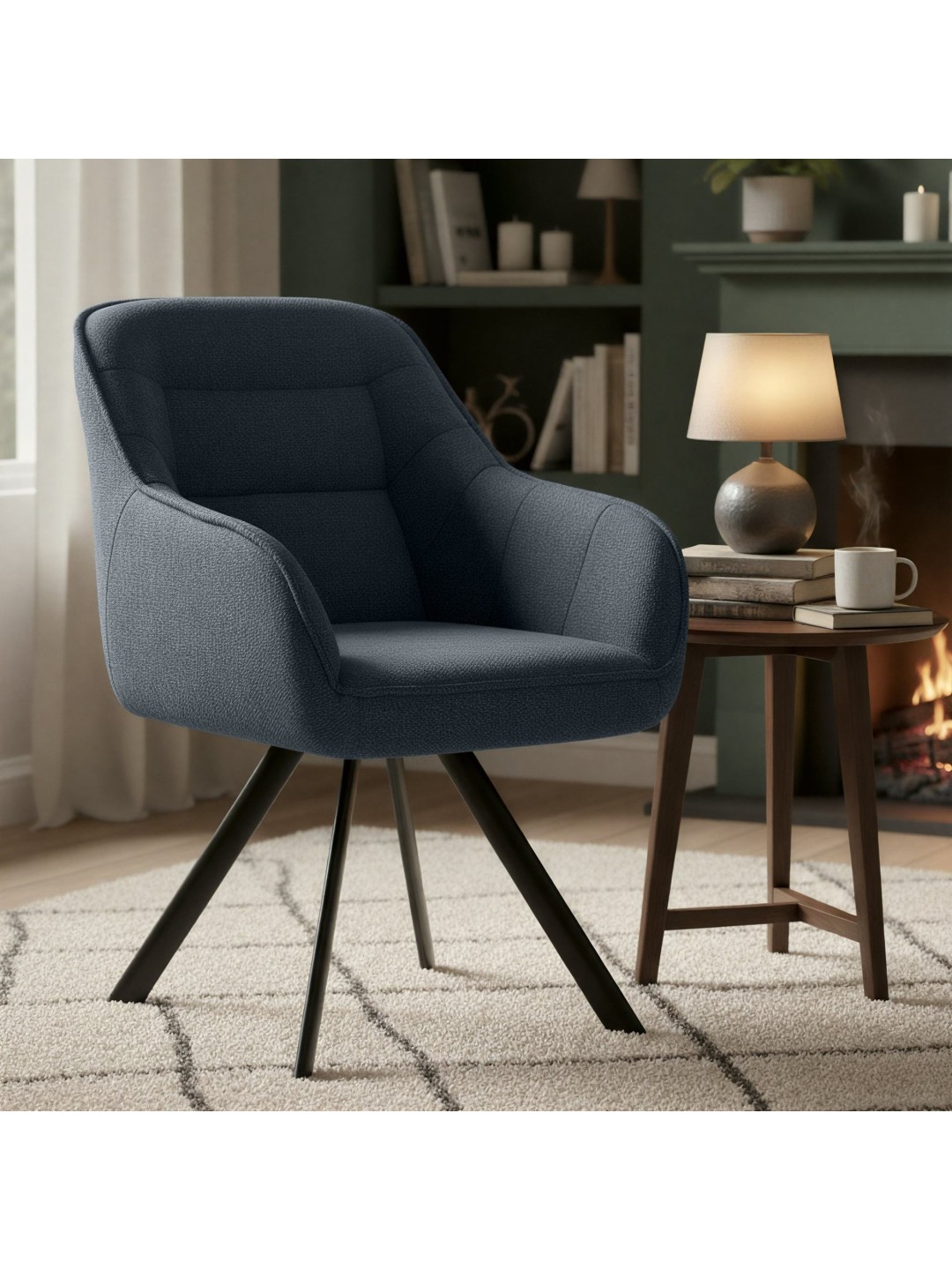 Fundamentet for denne lænestolslignende stol er det matsorte firbenede stel af pulverlakeret metal. Pettuli spisestuestolen kan belastes med op til 150 kg uden tøven.